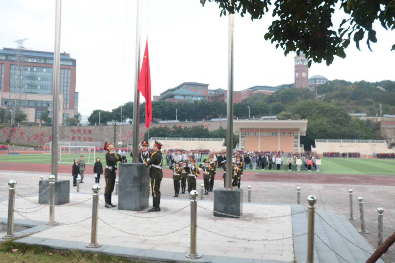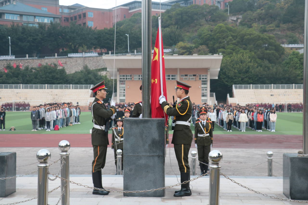 少年的肩应该担起草长莺飞和清风明月,中华复兴吾辈义不容辞。为激励同学们爱国热情奋发图强,勇于担当当代青年的神圣使命,设计学院、儿童发展与教育学院全体2020级新生于11月16日早上6:30在东区操场参加升旗仪式。