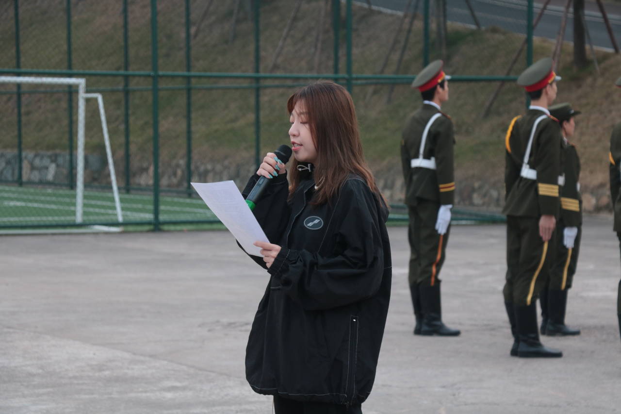 升旗礼毕,来自设计学院2020级美术学1班的王思涵同学做了“我与祖国共奋进,永远爱国在我心”为题的国旗下讲话。首先她感情激昂地向同学们阐述了新时代青年的义务与责任,接着运用梁任公百年前的《少年中国说》里所说的“青年兴则国家兴,青年强则国家强,这是不变的真理”来鼓励同学们肩负起时代使命。她号召一代一代的青年人,要时刻牢记国家使命,去奔走、去呐喊,敢担当、不畏难,所谓的“山积而高,泽积而长”。演讲的最后,她发出感慨,未来的中国并不缥缈,新的时代就在大家的手里,要有理想、有担当,国家才会有前途,民族才会有希望。