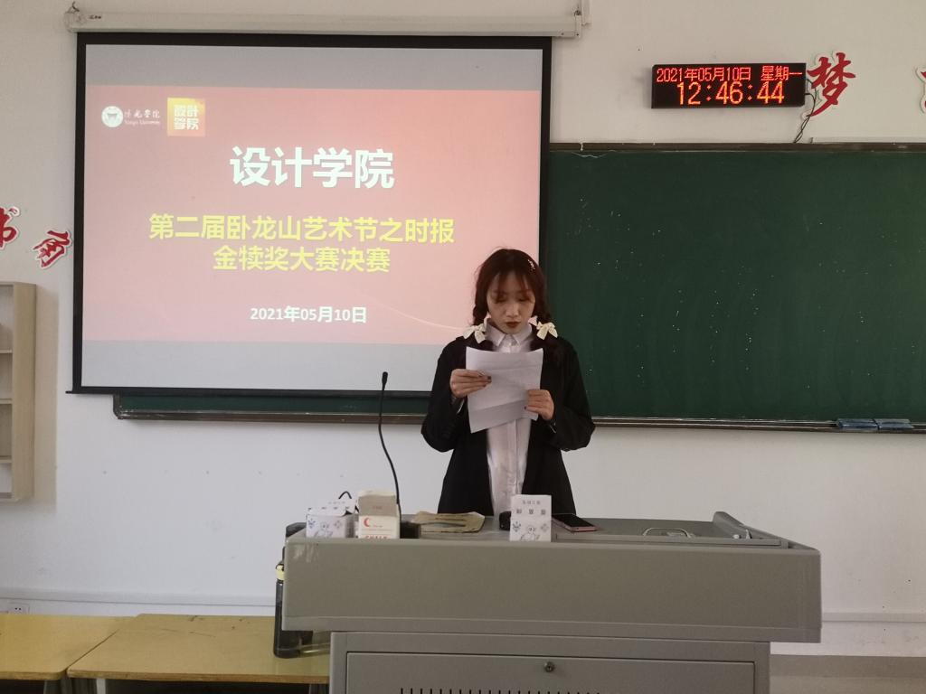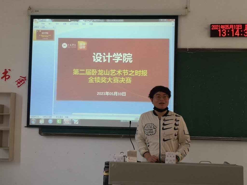为了培养设计学院学子创意思维,充分展示设计学子青春与活力,给广大老员工心灵浇灌创作养分,陶冶情操,展示丰富的第二课堂活动和独特的精神风貌,设计学院于2021年5月10日中午12:40在工B203举行“青春活力,创意风采”为主题的卧龙山艺术节之金犊奖大赛,为设计学院学子提供一个展示自我创意的舞台。设计学院吴辛迪老师、郭俊杰老师以及黄励强老师担任本次决赛评委。