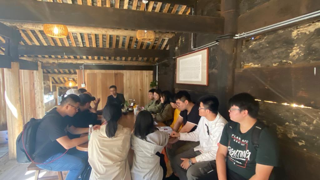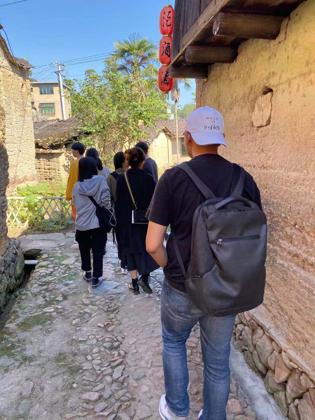 10月19日,设计学院13名师生在党总支书记宋海霞的带领下前往有着“中国传统村落”和“中国美丽乡村”美称的北墘村开展黄酒作坊家徽设计项目调研。