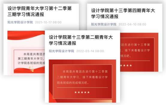 树立先进典型,展示学子风采,加强认识共青团员对中国共青团的责任与义务,开设“青年大学习”完成情况专栏,自第一期推文推出以来至今已有17篇;开设并定时推出“党员风采展示”专栏和“优秀学子风采”专栏,展示设计优秀学子风采,传承和宣扬优秀学风文化。