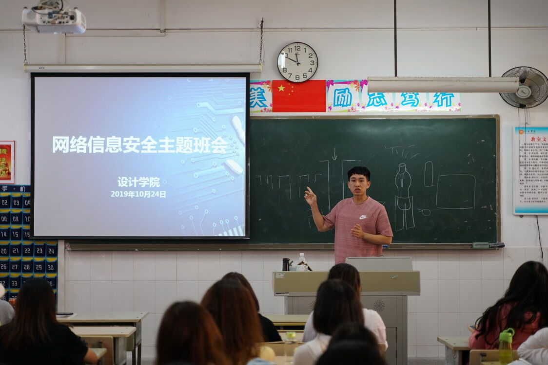 10月24日,设计学院网络信息安全主题班会在文科楼307举行,设计学院2018级全体同学参加,会议由辅导员林铭浩主持。为了提高各位同学的网络信息安全防范意识,防范网贷及电信诈骗情况的在同学们身上发生,林铭浩老师针对网络信息安全、电信诈骗及网贷开展了此次主题班会。