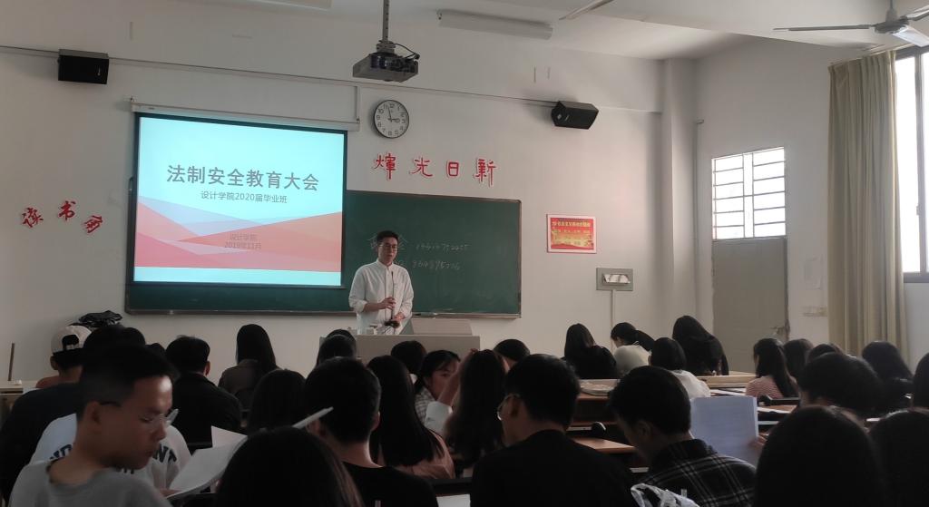 为进一步引导老员工树立社会主义法制理念和法治意识,培养遵法守法的行为习惯。2019年11月13日下午,设计学院2020届毕业班的同学在辅导员胡博晗老师的带领下开展了以法制安全教育会议。