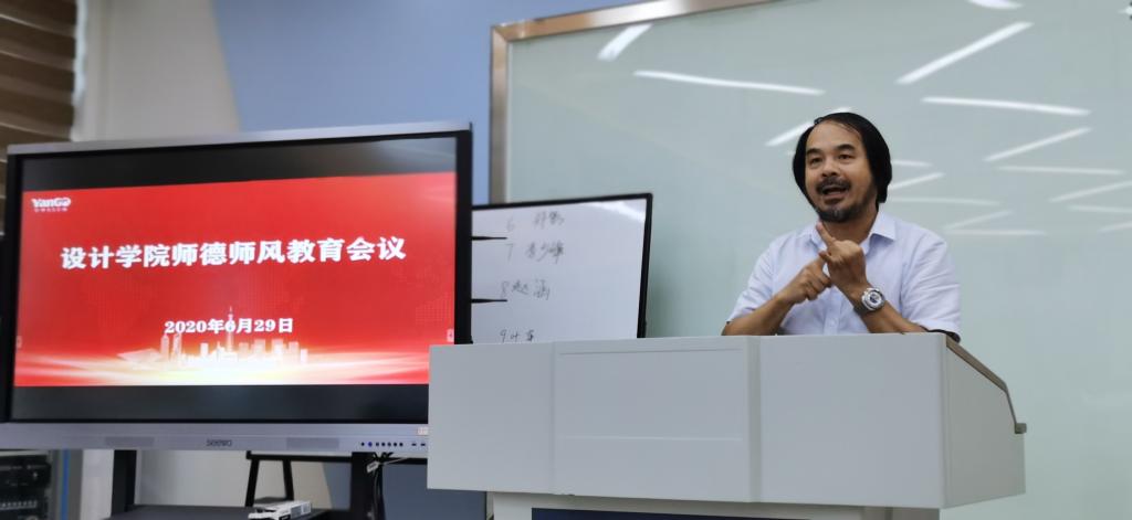 为进一步加强设计学院教职工的纪律意识和遵规守纪的思想观念,认真履行教师职业道德,做好高校教师职业工作,6月29日下午,设计学院在行政楼602室召开了师德师风建设专题会议,全体教职工参加了会议,会议由党总支书记宋海霞主持。
