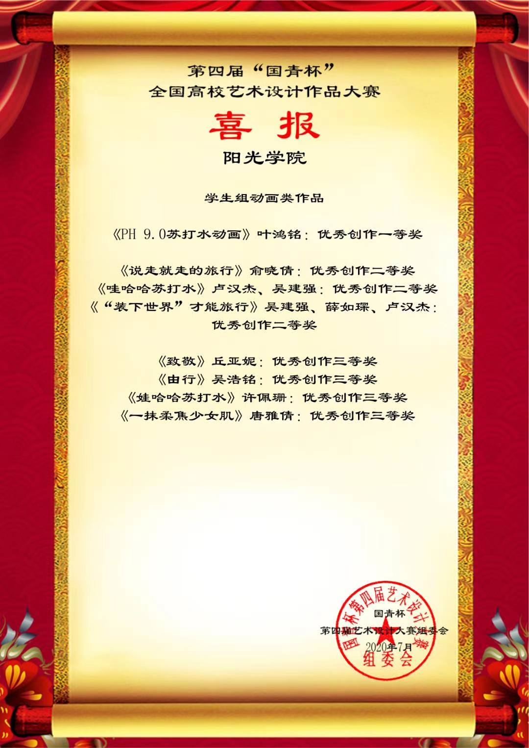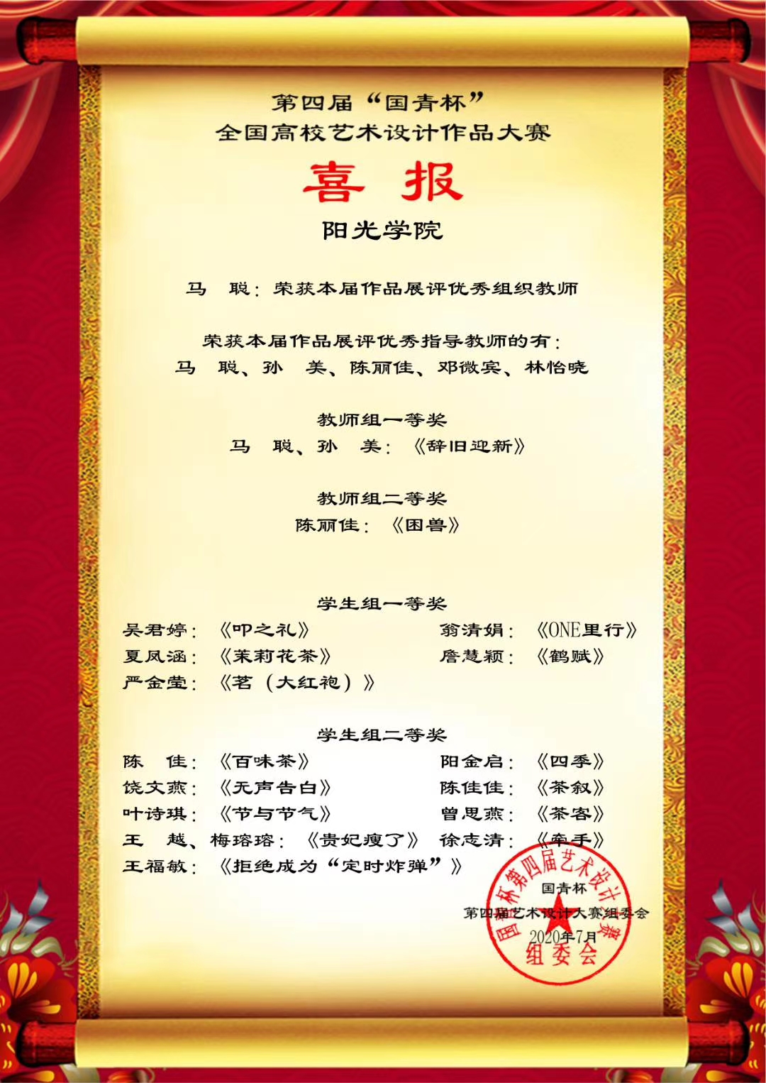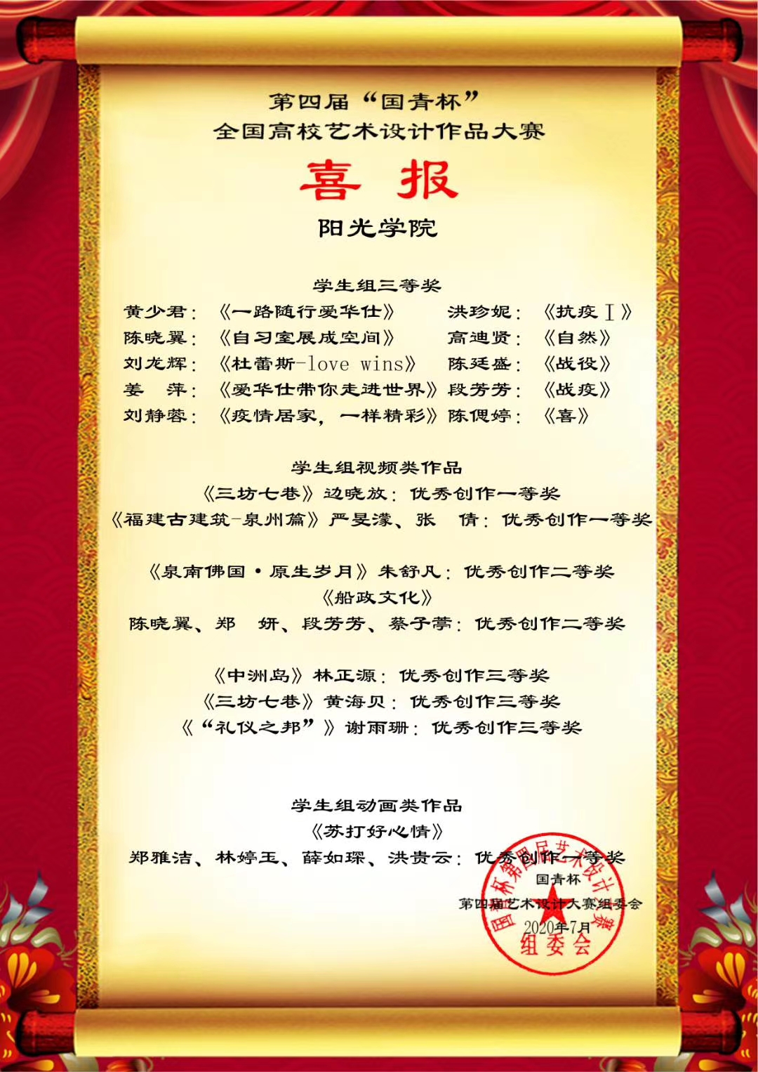 日前,第四届“国青杯”全国高校艺术设计作品大赛结果公布,设计学院师生在评展中荣获多项等级奖。此次线上获奖将获得参加由国青创新教育管理集团、澳门国青商学院等单位主办、承办的第六届中国企业形象建设年会的资格。