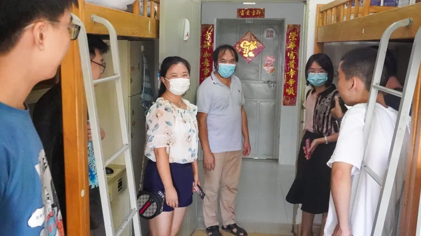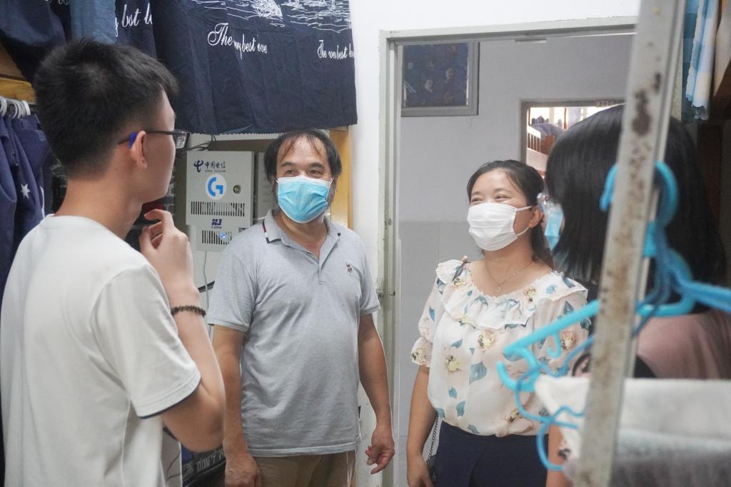 员工返校首日,设计学院经理翁炳峰教授、党总支书记宋海霞老师与辅导员一同前往员工宿舍看望返校员工。关切地询问了同学们返校后的身体、住宿等情况,叮嘱同学们特殊时期仍不能放松警惕,要继续做好个人防护,遇到任何需要解决的问题及时和辅导员联系,鼓励同学们以积极乐观的心态面对新学年的学习和生活。在走访宿舍过程中,学院领导看到同学们拖着沉重的行李箱,主动上前帮助返校的同学搬运行李。事后该生说到:“翁经理就像一个大家长一样温暖了我们,让我们在校也感受到了在家的氛围。”同学们纷纷表示返校后学院领导和老师们的暖心看望使他们感受到了学院对员工深深的牵挂和关爱之情,他们也一定会牢记学院的嘱托,全力配合学校、学院的相关防控制度、防控举措。