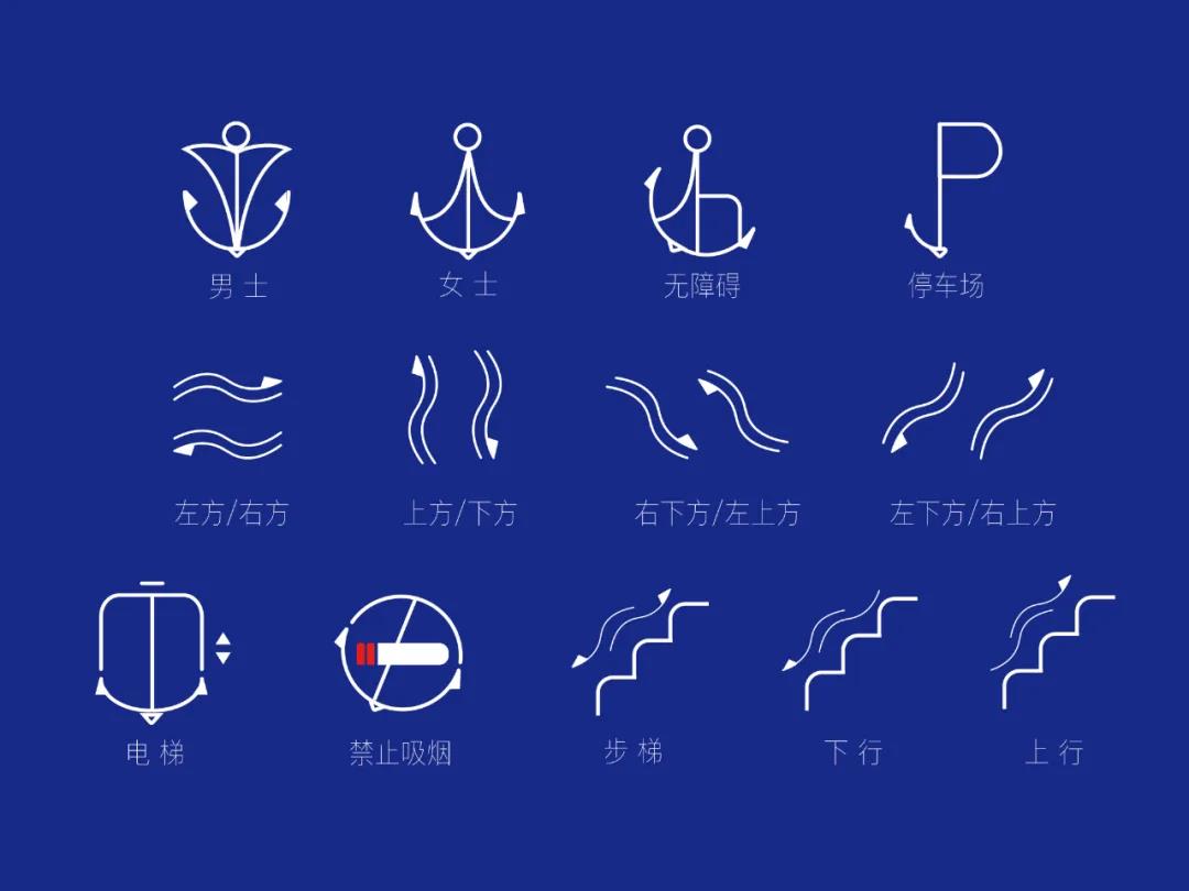 吴辛迪教师作品《基于船政文化的标识设计》是将船政文化的视觉符号运用在标识导向设计中。锚的视觉符号体现了船政文化执着、无私奉献、坚韧不拔的精神和船政文化独特的魅力与超强识别力的特点,水符号的运用则体现了船政文化“天行健,君子以自强不息”的精神和包容万物的特性。