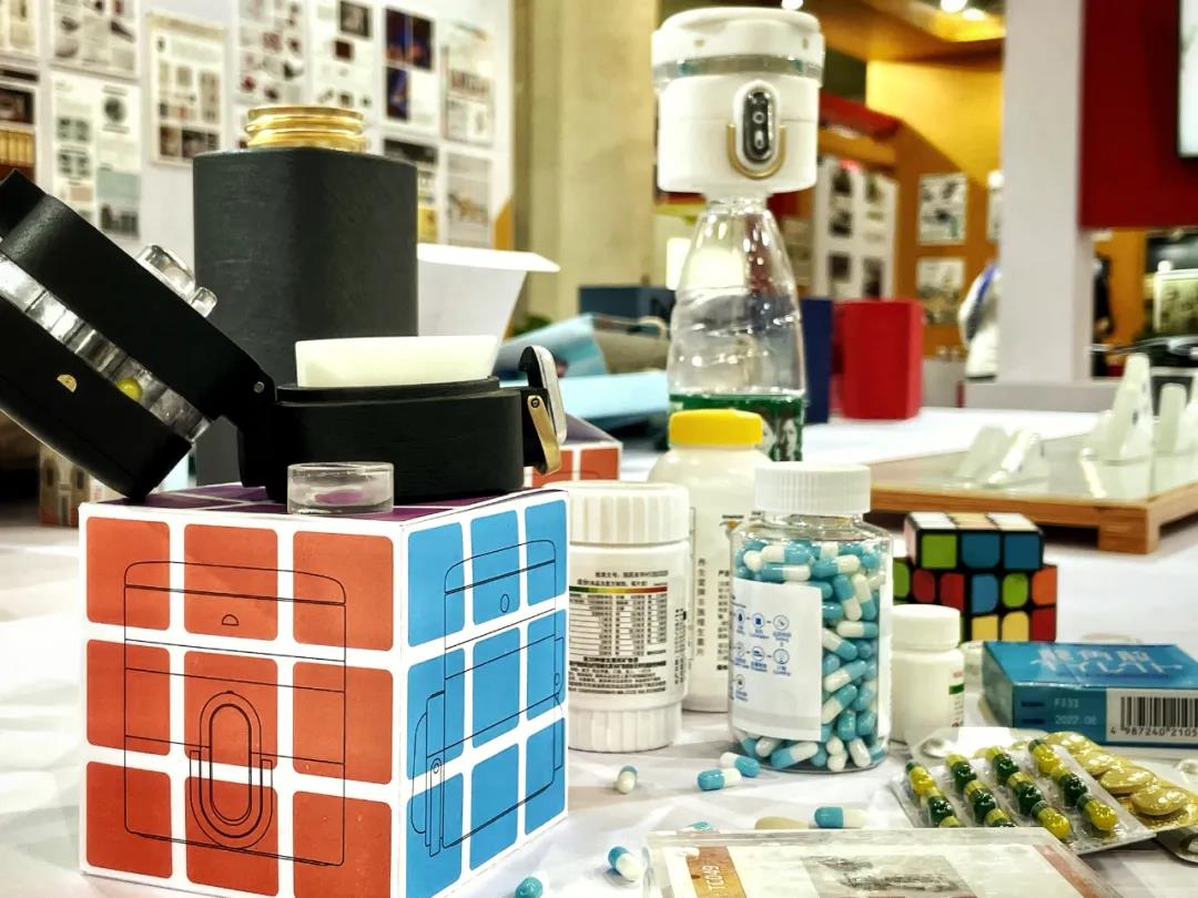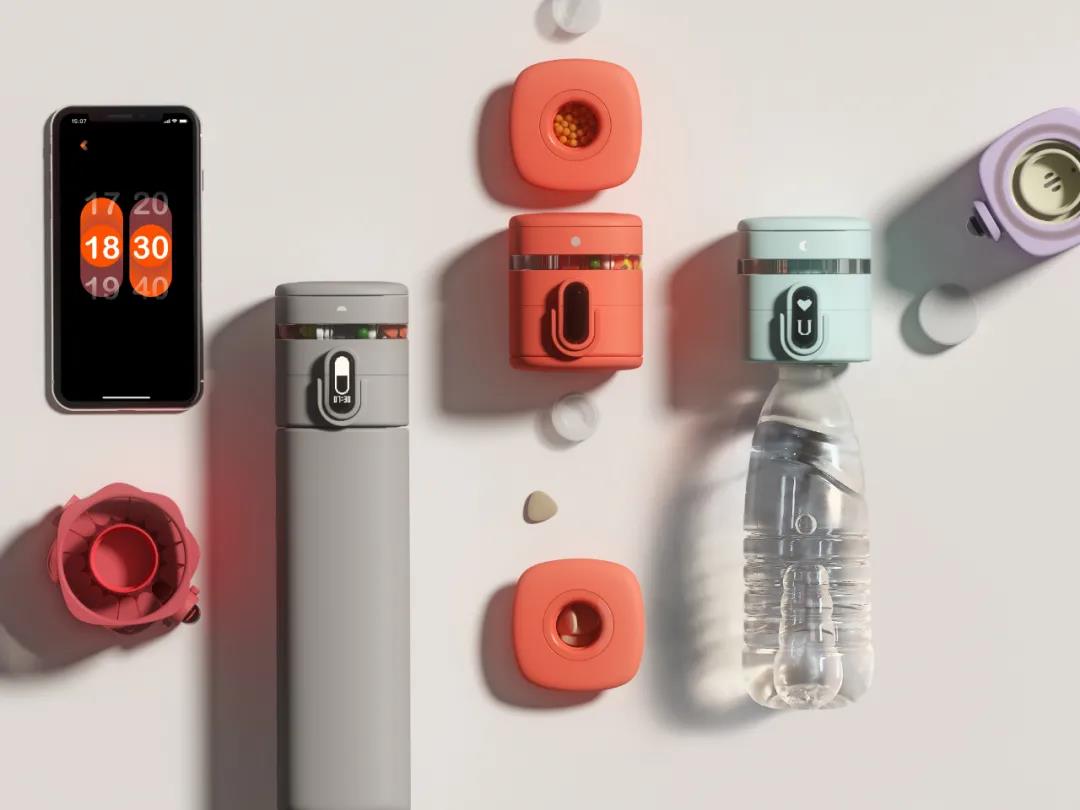 黄励强老此次获奖作品“智慧药理魔方”是面向中国3亿慢性病患者而设计的。他发现忘记吃药、错过用药时间、药品携带不便且用手接触药物的不卫生行为等问题时常困扰着服药人。为了解决上述难题,设计者将水壶与药盒进行一体化设计,有效解决了药品的携带不易的问题;其智能化用药管理功能让患者更精准地掌控用药时间;同时,水壶的药盒部分可取下并匹配绝大多数的矿泉水瓶,可方便患者随时、随地、方便、卫生地用药。