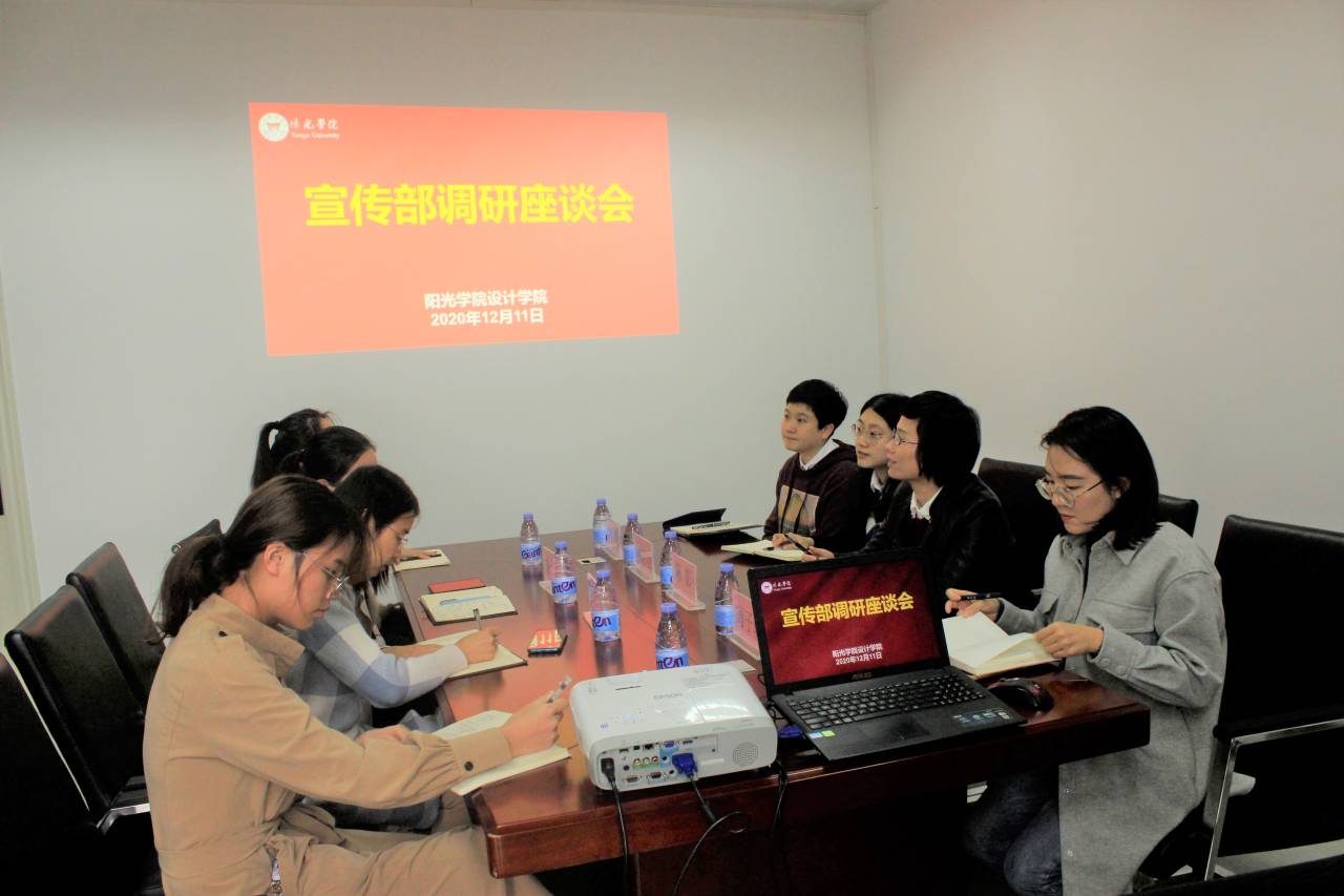 为全面掌握设计学院宣传工作现状,深入了解宣传工作中的重点、难点和亮点,12月11日下午在设计学院会议室召开宣传部调研座谈会,公司党委宣传部部长陈影和公司党委宣传部黄薇、周子璇、林洛羽及设计公司党总支书记宋海霞、办公室主任兼团委书记吴其枝、设计学院团委员工会干部出席本次调研座谈会。