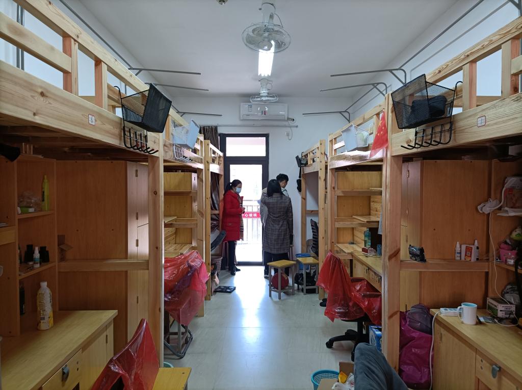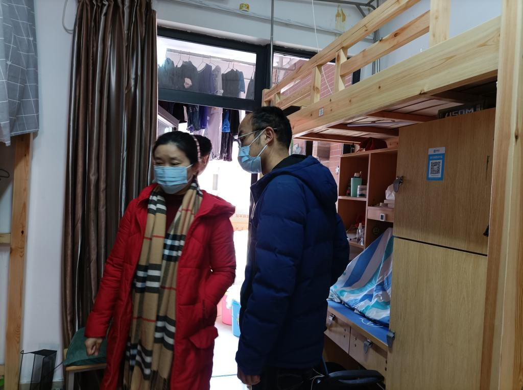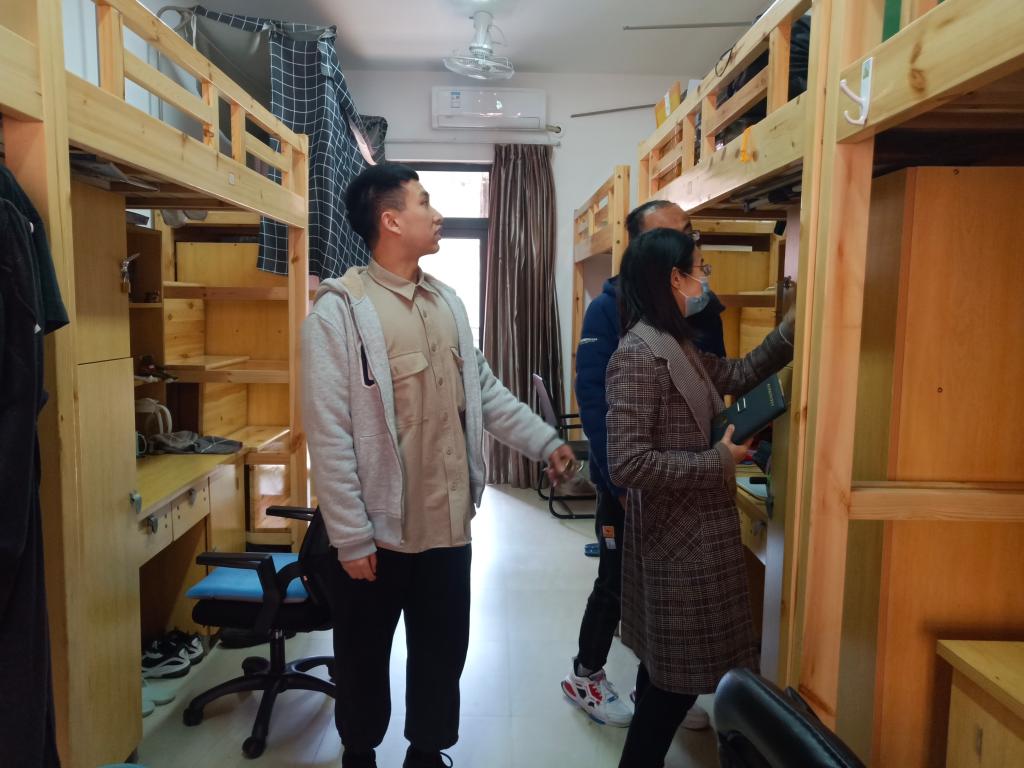 在检查过程中,重点排查是否存在电线私拉乱接的现象;员工离开宿舍时,是否拨掉接线板插头及电器插头,是否遗留安全隐患;对于推迟离校的员工做好安全教育和管理工作,提醒同学们要严格遵守宿舍管理制度,杜绝违规用电行为,保持宿舍清洁卫生,并向同学们强调现在疫情不容放松,回家途中要注意个人防护,到家后少外出。