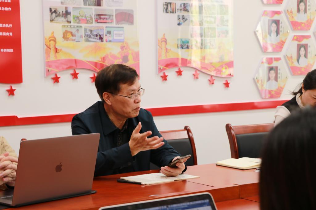 会上,学科带头人翁炳峰教授通报了团队队伍建设要求,由高级职称教师带队伍分组组织开展教改、科研、竞赛等各项活动,每一位老师坚持在某一领域持续深入研究,下一次教职工例会各组汇报研究选题;2022年3月份教育厅、福州市人文社科,每组根据老师研究方向准备2-3个题目,提前准备申报材料。