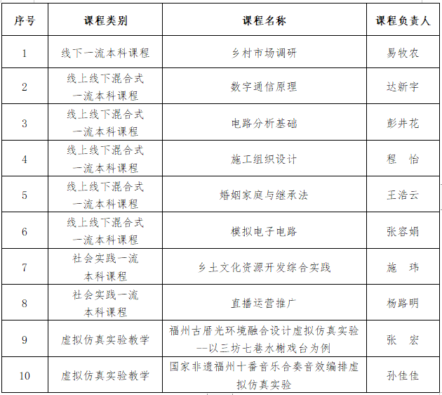 12月31日,福建省教育厅公布2021年省级一流本科课程名单,公司10门课程入选省级一流课程。其中,线上线下混合式一流课程5门、线下一流课程1门、虚拟仿真实验教学一流课程2门、社会实践一流课程2门。