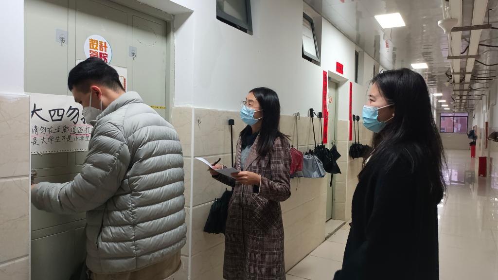 1月6日-11日,设计学院开展了办公室、工作室、实验室及员工宿舍的卫生检查及安全隐患排查。党总支书记宋海霞、办公室主任吴其枝、全体辅导员及实验员参加了检查。