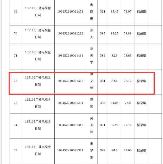 状态:拟录取