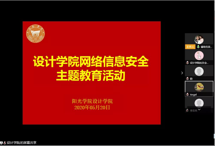 近年来,关于网络信息安全的事件频率攀升、造成的经济损失不断增加,再加之处于疫情时期,线上教育全面开展,同学们“触网”的时间较长,为了有效强化员工网络信息安全的意识,提升员工分辨网络信息隐患的能力,正确使用网络资源,合理使用网络的自控能力,5月20日,设计学院各年级组织开展了以“网络信息安全”为主题的教育活动,由于疫情期间,此次活动通过腾讯视频会议的方式进行网上学习、教育。