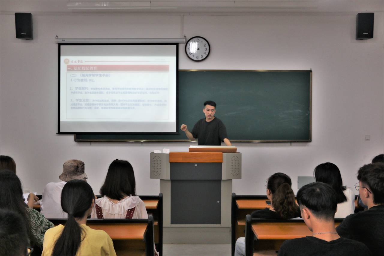 为进一步加强数字媒体技术专升本新生思想政治教育和日常管理工作,增强员工遵守校规校纪的自觉性,促进校风、学风建设。设计学院于9月15日上午在R1-204召开设计学院2020级数字媒体技术专业专升本新生“行为规范”为主题的入学教育。2018级辅导员林铭浩老师以及2020级数字媒体技术专升本全体新生参与此次会议。